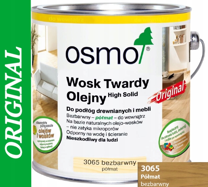 Wosk Twardy Olejny Original to bezbarwna powłoka na bazie naturalnych olejów i wosków, opracowana specjalnie z myślą o profesjonalnym wykończeniu podłóg i innych silnie obciążonych powierzchni drewnianych.